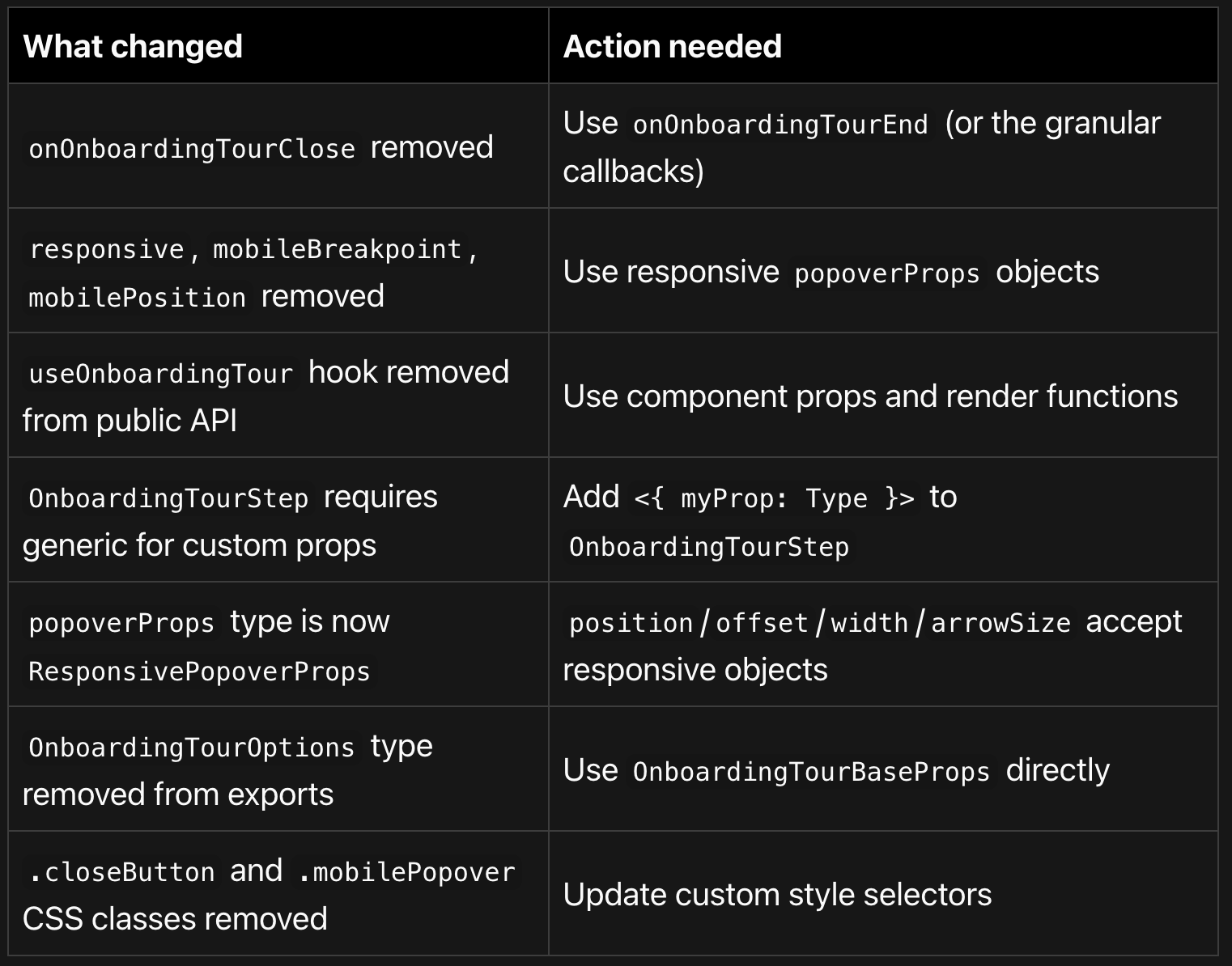 <OnboardingTour onOnboardingTourEnd={() => setStarted(false)} />2. Replace responsive props