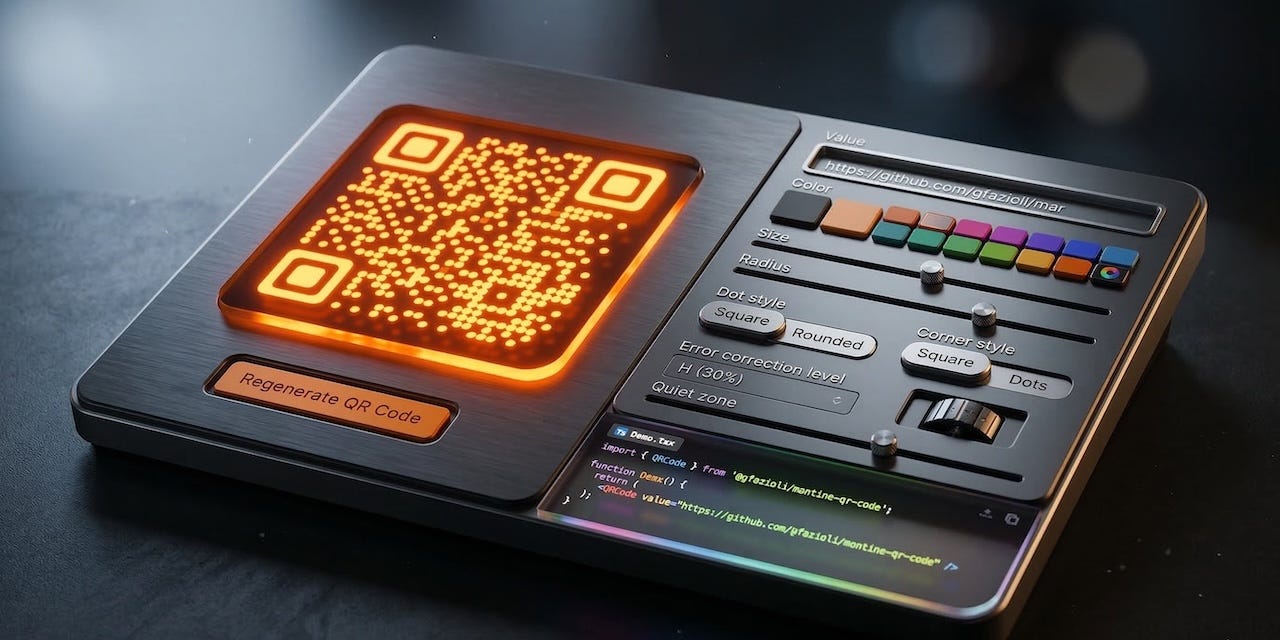 Generate fully scannable, beautifully styled QR codes with custom dot shapes, finder patterns, image overlays, and one-click SVG/PNG download — all integrated with the Mantine design system.